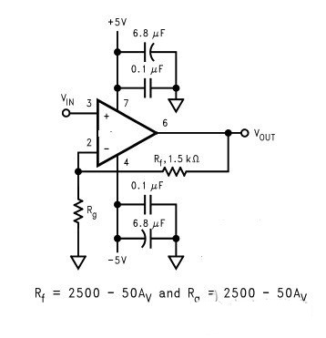 比如下图中,电路已确定是同相放大器,给定Av,根据公式确定Rf和Rg两电阻即可。
